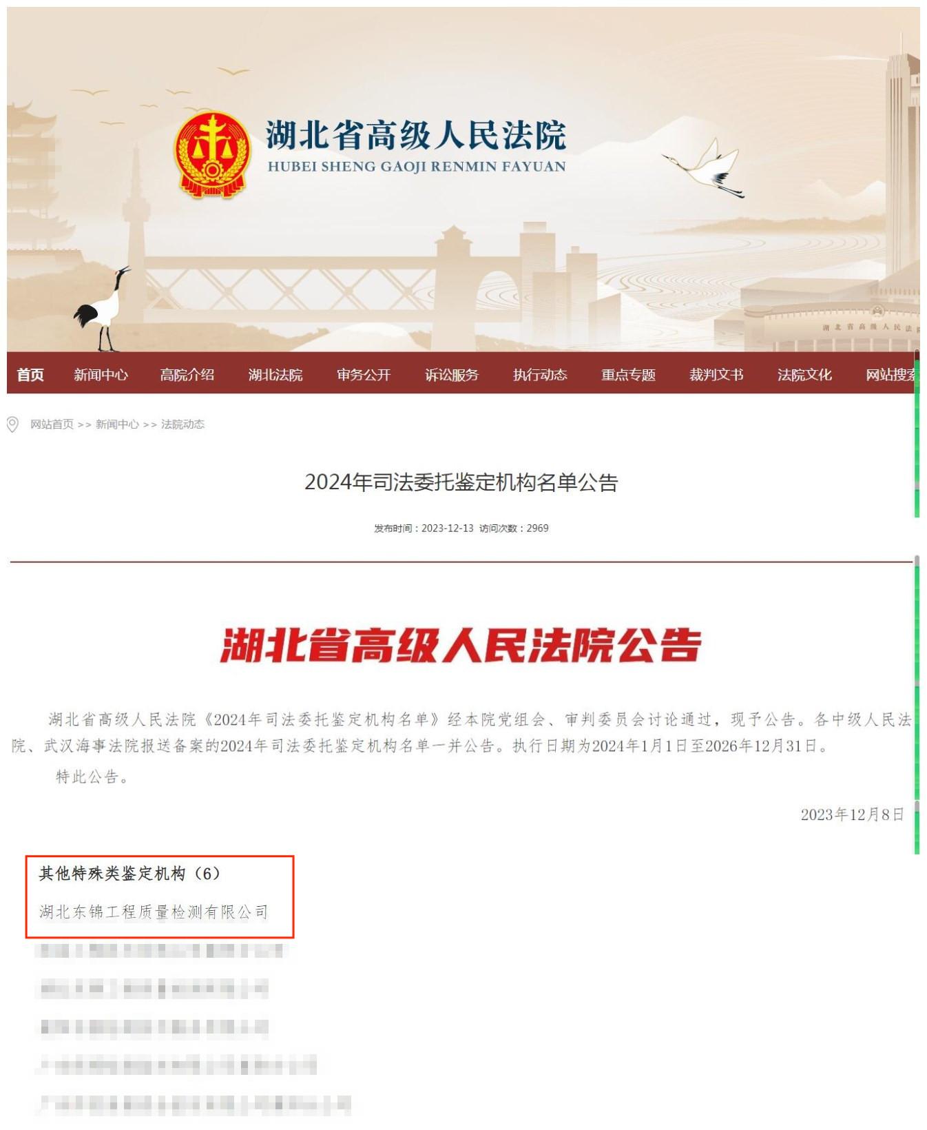 公司入選湖北省高級人民法院《2024年司法委托鑒定機構(gòu)名單》
