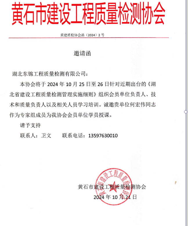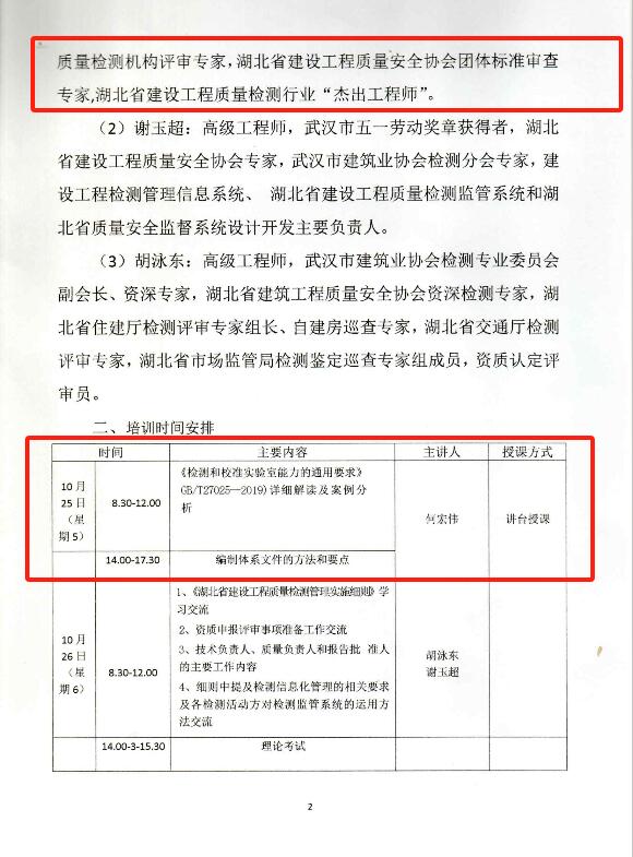 閱讀次數(shù):1072 發(fā)布時間:2024年10月22日公司總經(jīng)理何宏偉受黃石市建設工程質(zhì)量檢測協(xié)會邀請,于2024年10月25日-26日作為專家組成員為協(xié)會會員單位授課,授課內(nèi)容為:《檢測和校準實驗室能力的通用要求》GB/T27025- -2019) 詳細解讀及案例分析和編制體系文件的方法和要點。