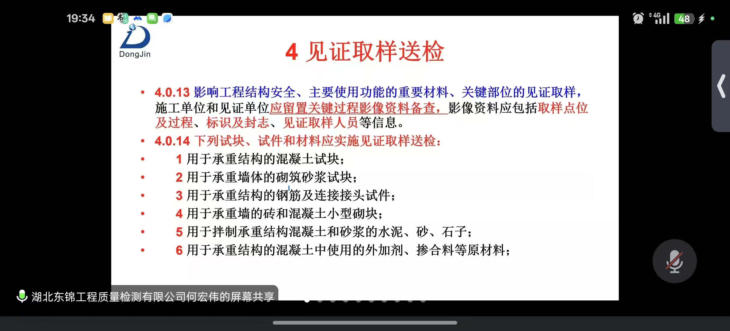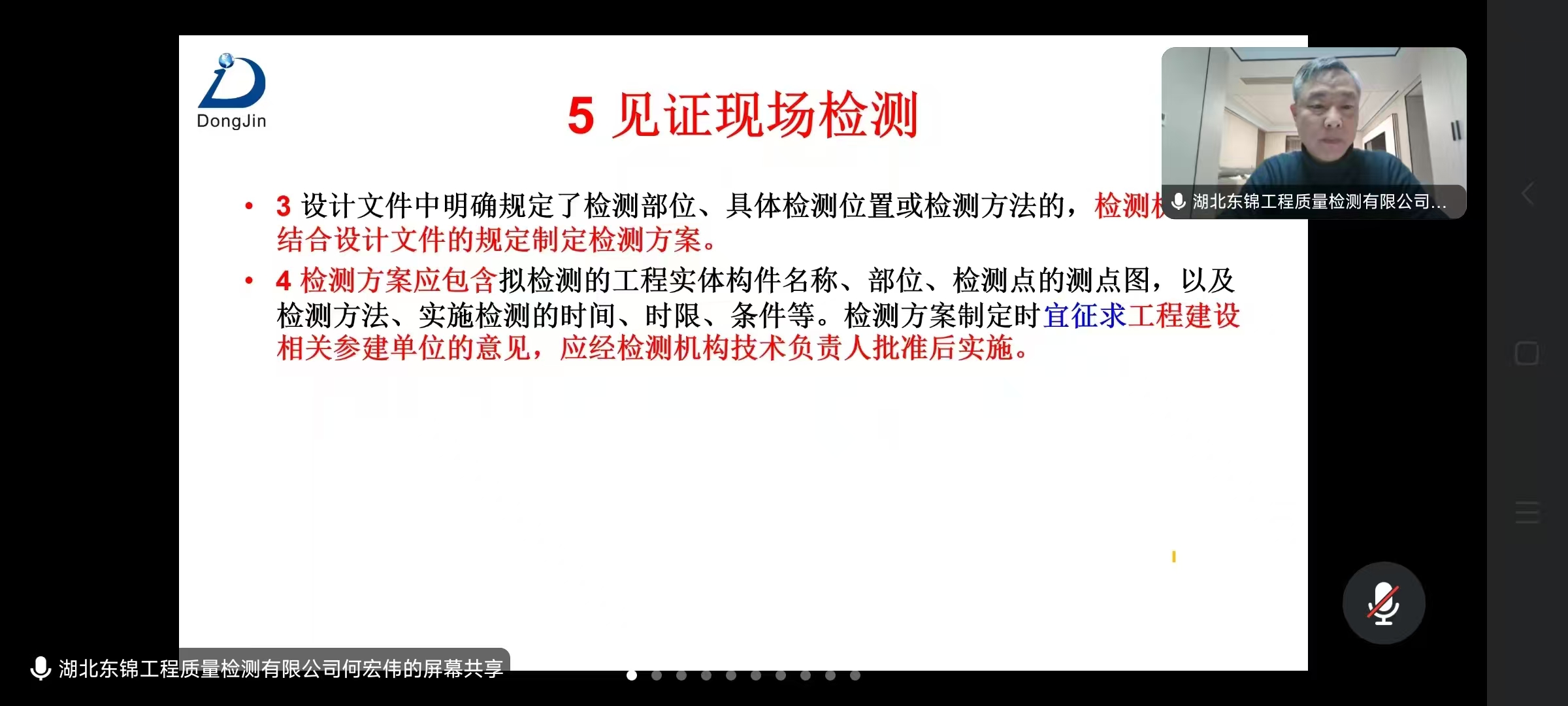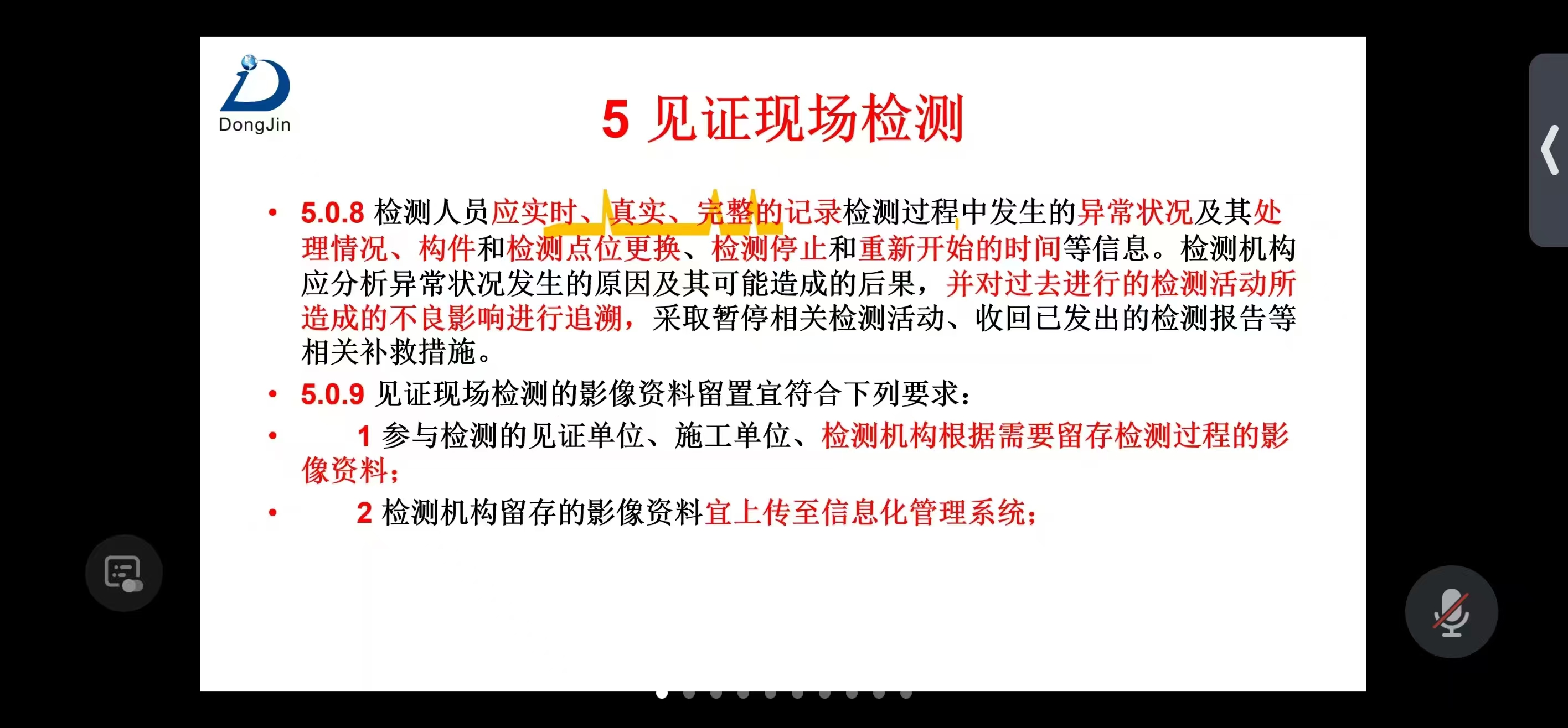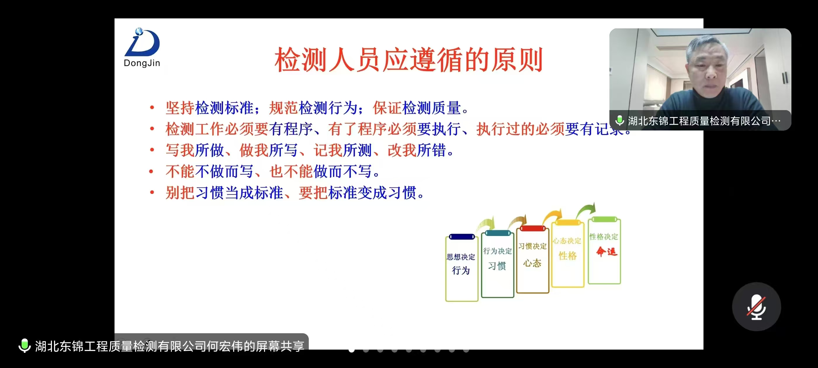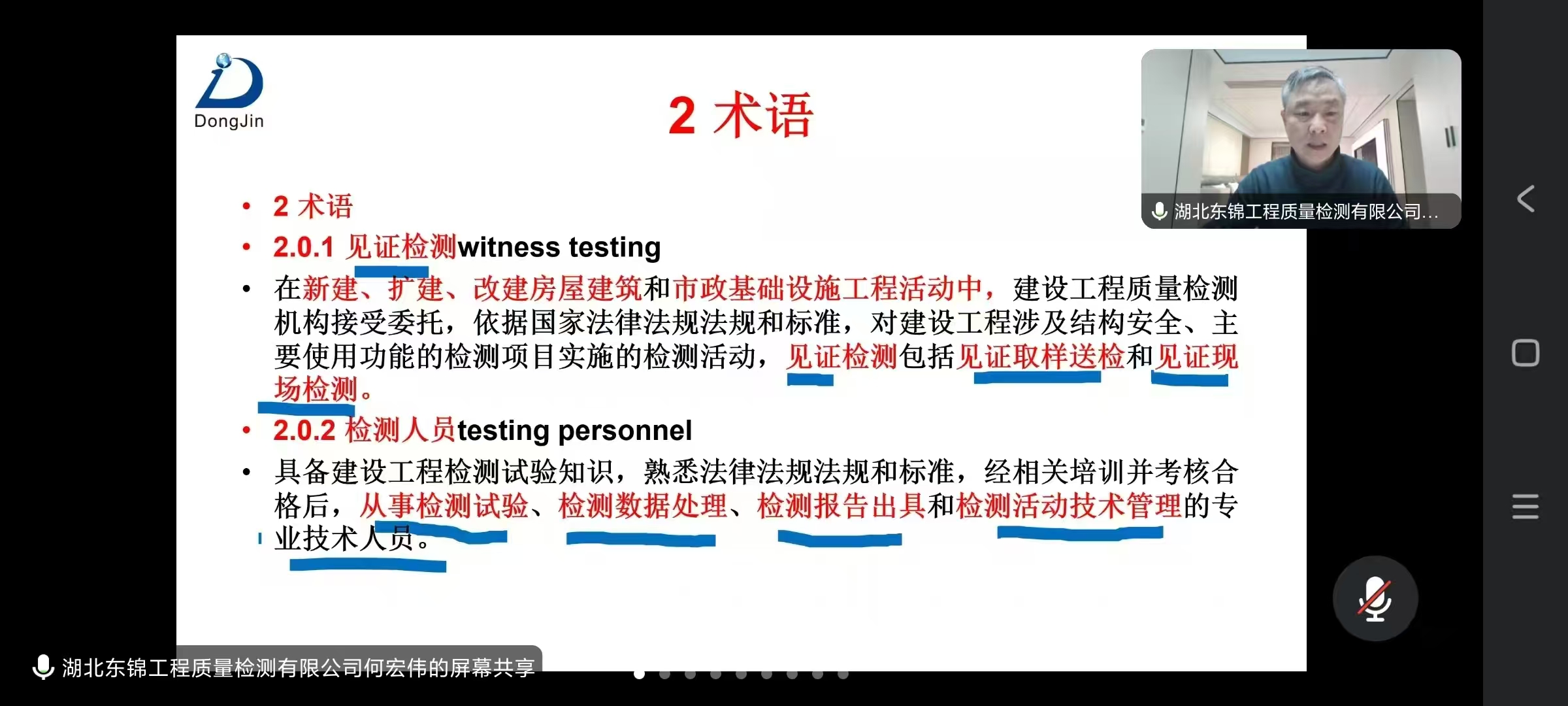 閱讀次數(shù):793 發(fā)布時間:2025年02月09日2025年2月8日晚7點(diǎn),公司總經(jīng)理何宏偉主講《建設(shè)工程見證取樣檢測標(biāo)準(zhǔn)》培訓(xùn)。此次培訓(xùn)將重點(diǎn)講解工程質(zhì)量檢測中涉及的檢測、建設(shè)、監(jiān)理、施工單位等各方的責(zé)任界限,以及作為檢測單位應(yīng)遵守的檢測標(biāo)準(zhǔn)。通過培訓(xùn),參建各方將更清晰地了解各自的職責(zé)和義務(wù),確保工程質(zhì)量檢測的規(guī)范性和有效性。