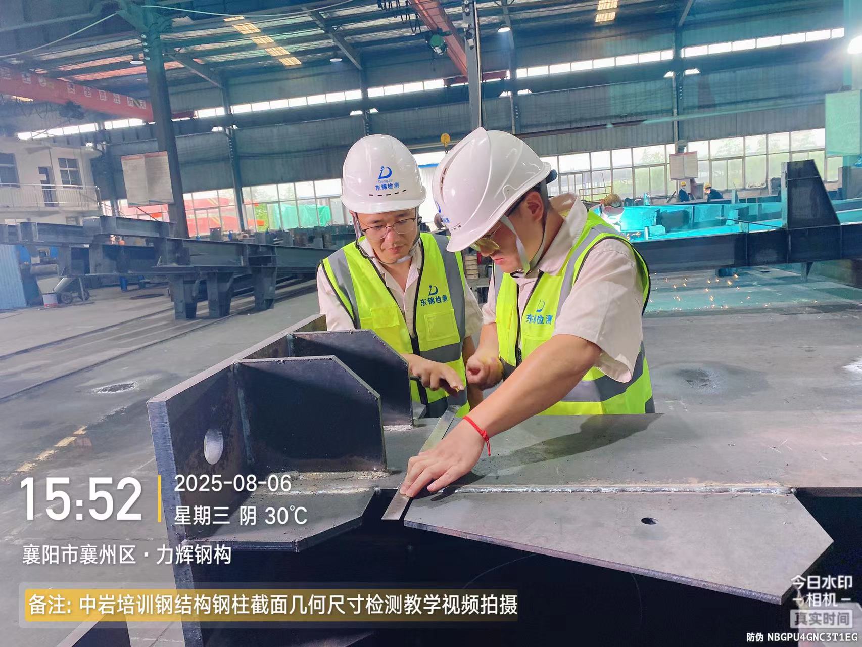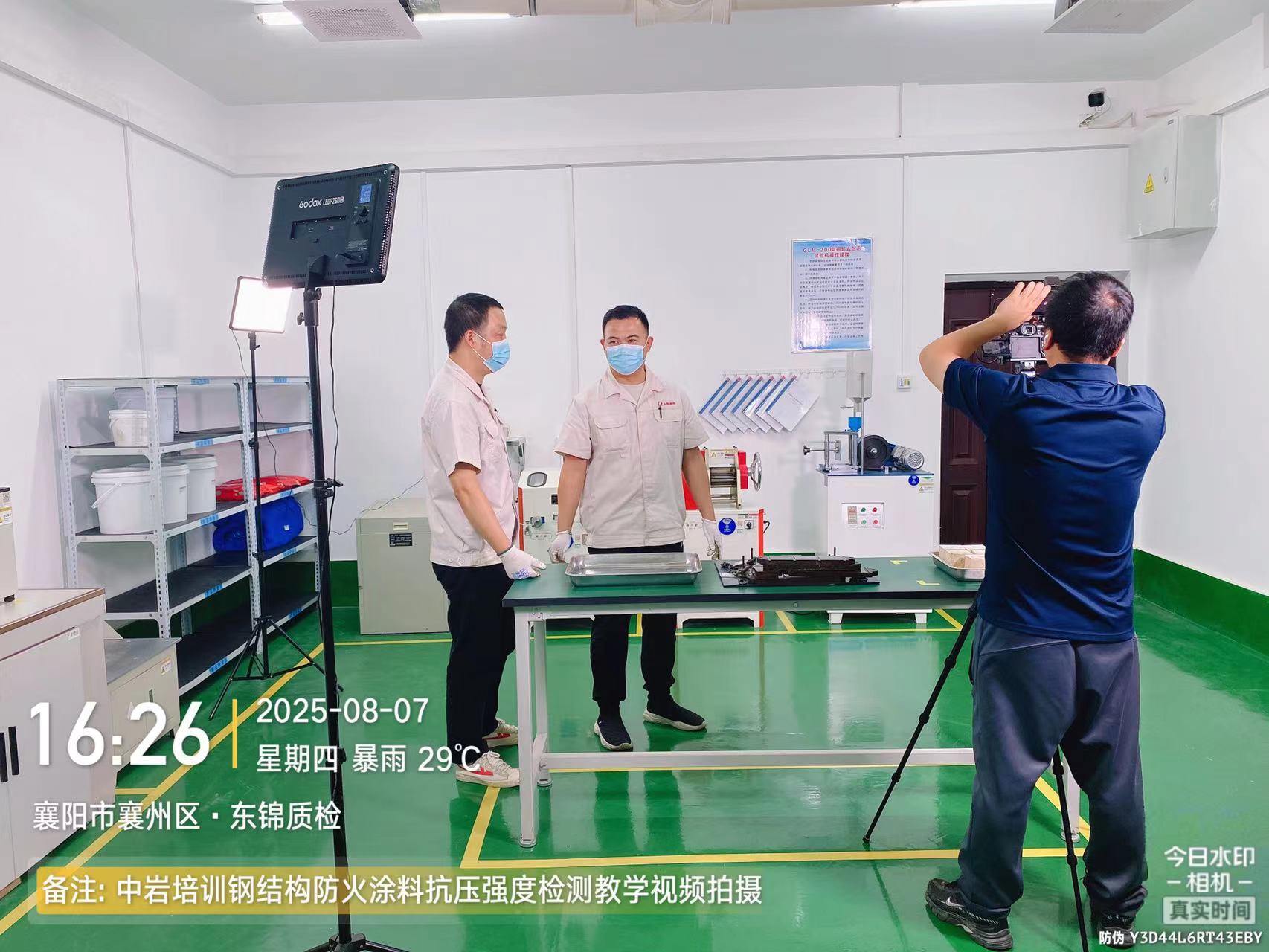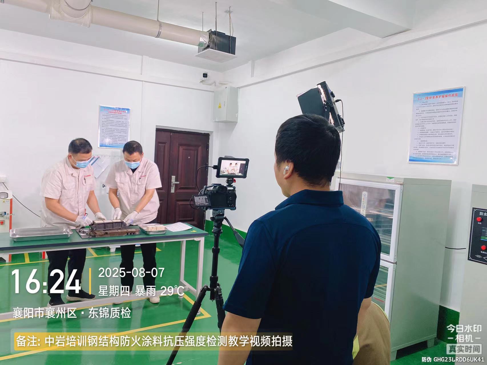 閱讀次數(shù):190 發(fā)布時間:2025年08月11日8月6日至8日,武漢中科巖土工程技術培訓有限公司(簡稱“中巖培訓”)攜手湖北東錦工程質(zhì)量檢測有限公司,共同推進鋼結(jié)構(gòu)檢測實操教學視頻的攝制工作。本次教學視頻的拍攝,旨在優(yōu)化和規(guī)范鋼結(jié)構(gòu)檢測行業(yè)的檢測試驗流程,同時提升從業(yè)人員的專業(yè)技能和職業(yè)素養(yǎng)。經(jīng)過中巖培訓在全國范圍內(nèi)的精心考察和篩選,最終選定湖北東錦工程質(zhì)量檢測有限公司作為鋼結(jié)構(gòu)檢測試驗參數(shù)的拍攝機構(gòu),說明我公司在檢測能力、內(nèi)部管理以及體系運行方面均表現(xiàn)卓越。本次拍攝在大家共同努力下獲得良好效果,將東錦檢測最好的風采展現(xiàn)給了全國的檢測行業(yè)。