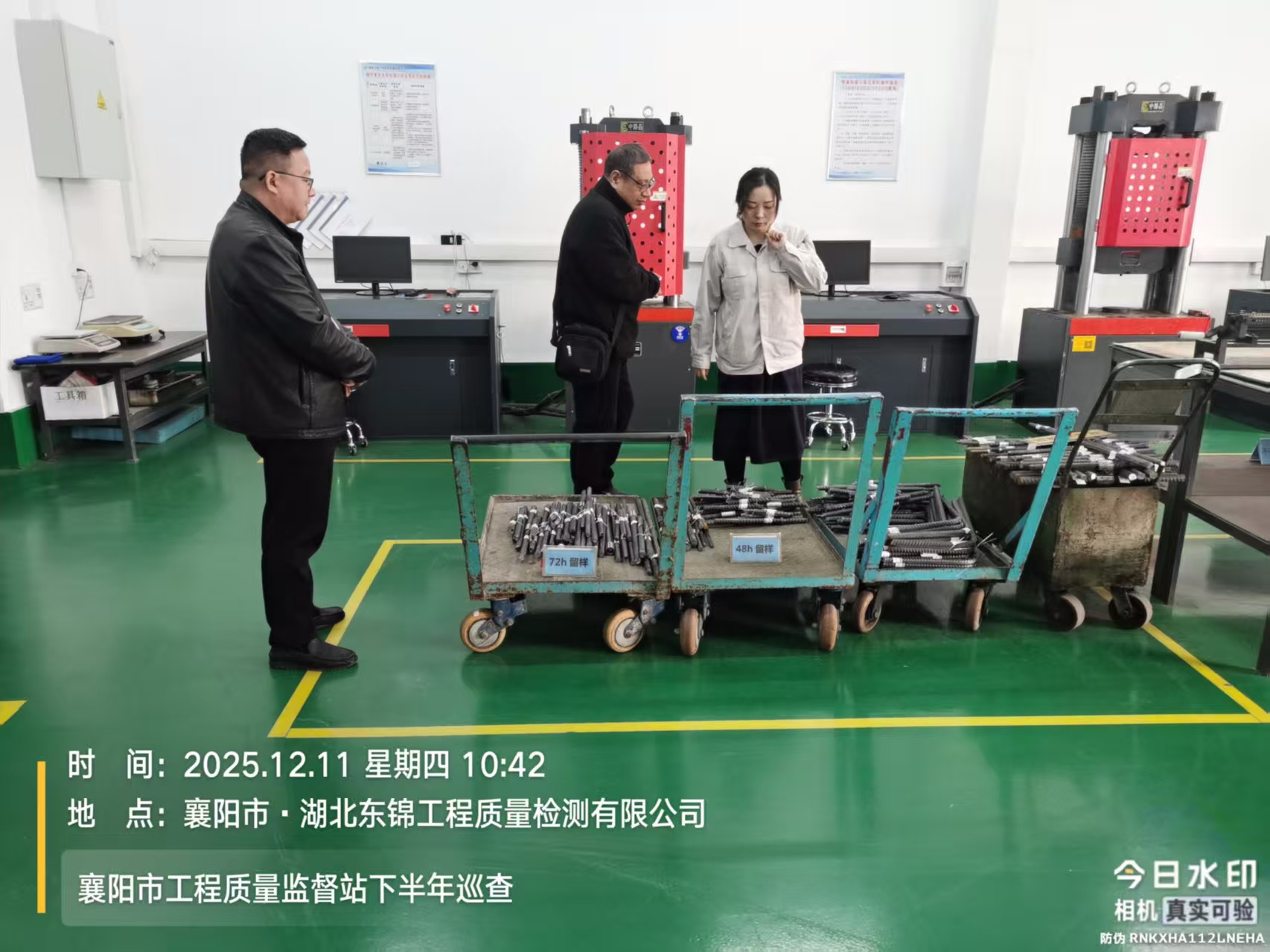 2025年12月11日,襄陽(yáng)市工程質(zhì)量監(jiān)督站蒞臨公司進(jìn)行質(zhì)量巡查。監(jiān)督站巡查組由站領(lǐng)導(dǎo)朱主任帶隊(duì),抽調(diào)各專業(yè)科室技術(shù)骨干組成。巡查組通過實(shí)地勘查、查閱資料、詢問座談等多種形式,對(duì)工程實(shí)體質(zhì)量、關(guān)鍵工序施工工藝、建筑材料進(jìn)場(chǎng)驗(yàn)收與復(fù)試、工程質(zhì)量保證資料、各方責(zé)任主體質(zhì)量行為以及人員、資質(zhì)管理等方面進(jìn)行了全面、細(xì)致的檢查。