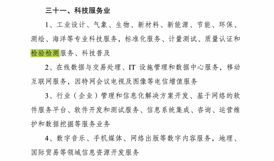 檢驗檢測行業(yè)被國家發(fā)改委列入鼓勵發(fā)展目錄