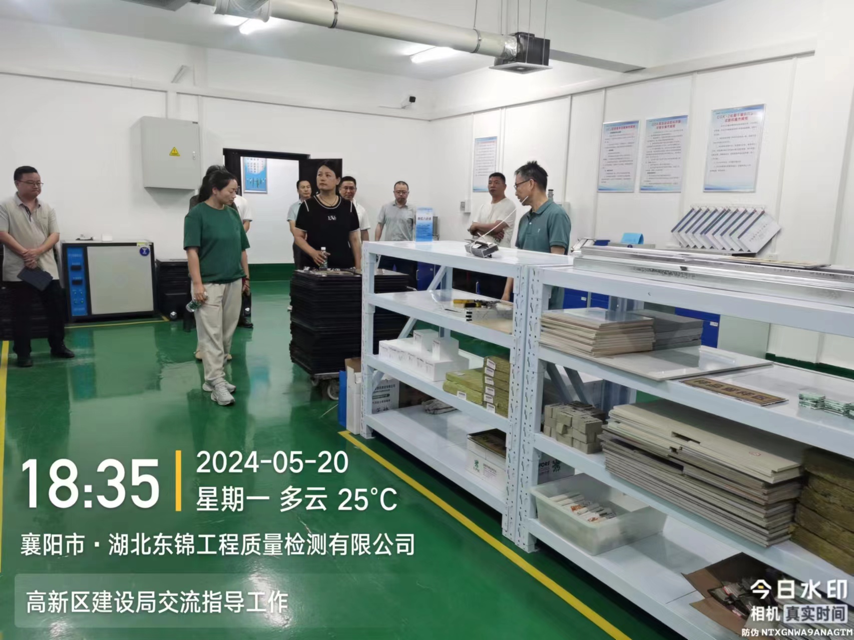 閱讀次數(shù):1366 發(fā)布時間:2024年05月21日2024年5月20日下午,公司屬地襄陽市高新區(qū)城鄉(xiāng)建設(shè)局領(lǐng)導一行蒞臨公司考察指導工作。對于東錦檢測公司的服務(wù)能力給予充分肯定。公司董事長侯修煉等領(lǐng)導全程陪同,詳細介紹公司各實驗室及所承擔的檢測任務(wù)。