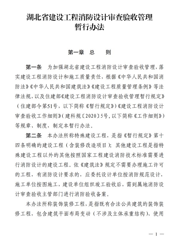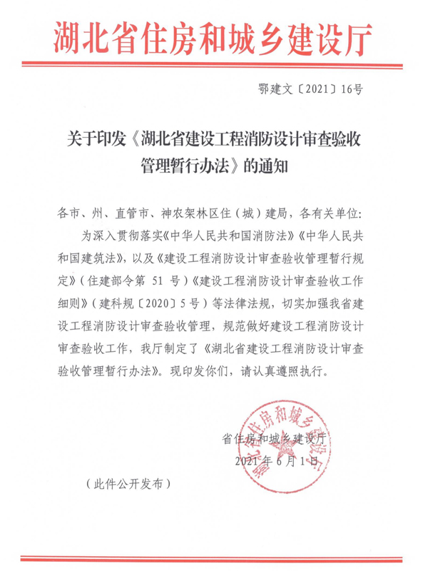 關(guān)于印發(fā)《湖北省建設(shè)工程消防設(shè)計審查驗收管理暫行辦法》的通知