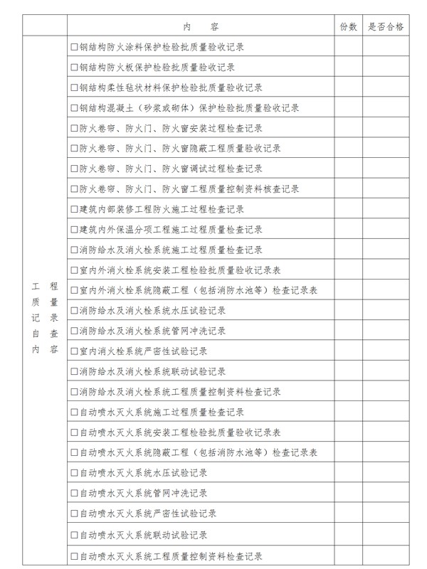 (二)具有工程竣工驗收報告,且竣工驗收消防查驗內(nèi)容完整、資料附件齊全;